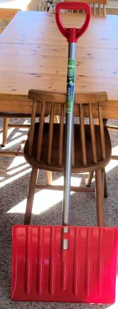 nunca inclinarse otra vez a pala de nieve!  Agregar un segundo mango de cualquier herramienta descompuesta con un mango en D (o incluso una pala de cheapy corte), dos piezas de madera y unas tornillos y tuercas.  Funciona incluso mejor que las palas