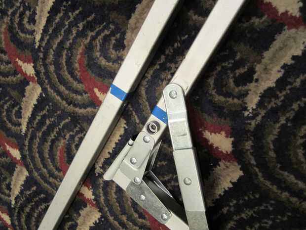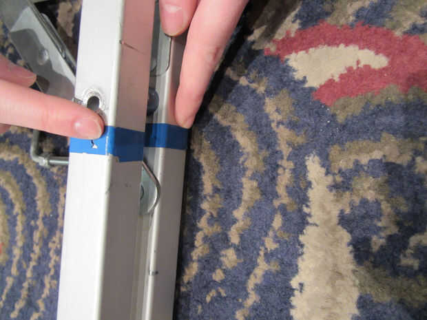 Fije las patas al marco de pantalla cinta coincidente en las piernas con cinta adhesiva en el marco.
