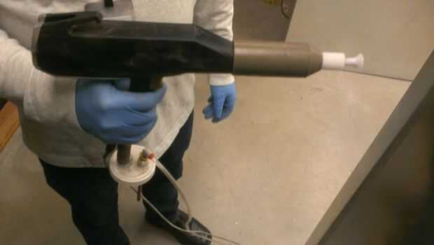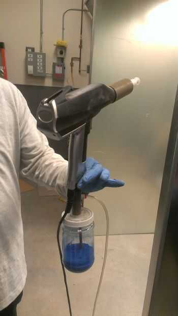 Enroscar el frasco de polvo en la pistola y encienda la arma.