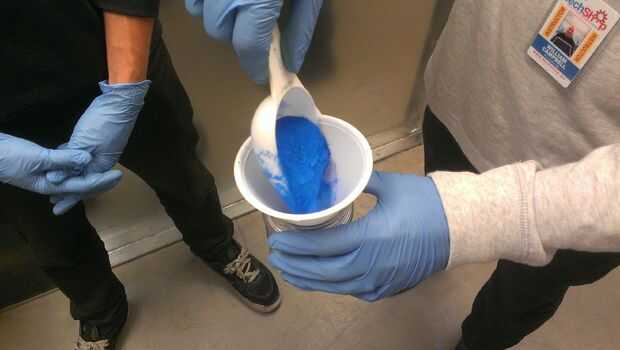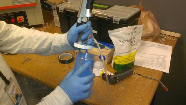 Vierta el polvo en un frasco con el embudo.