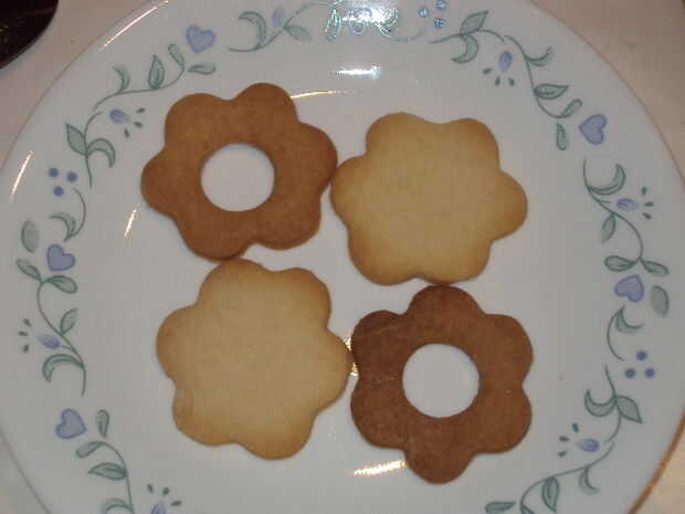 3. Encuentre un objeto circular pequeño con el cual usted puede recortar el centro de solo la mitad de las galletas cortadas (yo usé un dedal)