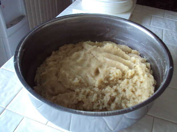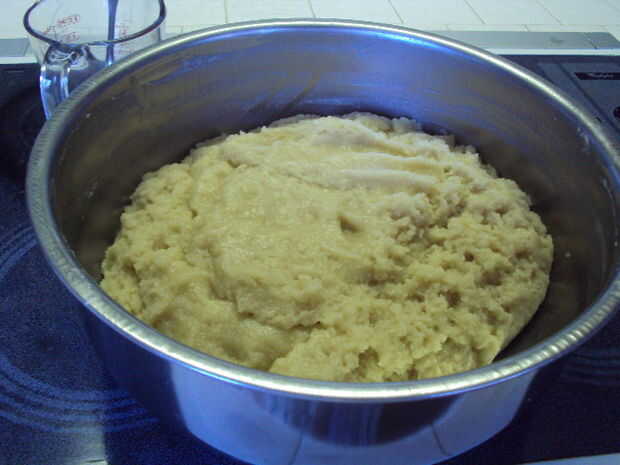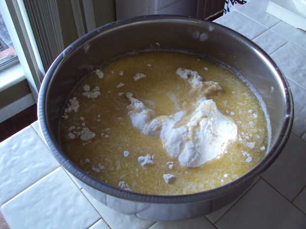 3. Añadir la harina, el azúcar y la sal en un cuenco muy, muy grande y bate junto.