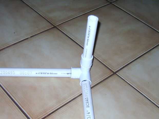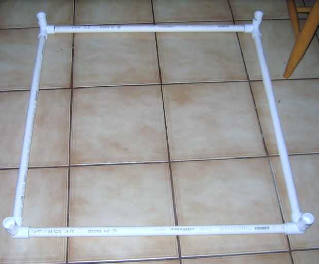 Comenzar con un conjunto de 3 vías y establecer planos para que dos aberturas son paralelas con el suelo y el tercero es hacia arriba. Si tienes que usar las piezas extra para enroscar como yo lo hice para hacer el tercer lado cabe, asegúrese de que el extremo hacia arriba de cada sección así los lados será incluso. Coloque una pieza de lado a cada una de las dos aberturas paralelas con el suelo. Al final de cada lado, fije otro conjunto de 3 vías, luego otro trozo de lado, hasta tener un cuadrado plano con cuatro aberturas hacia arriba (ver foto 1).