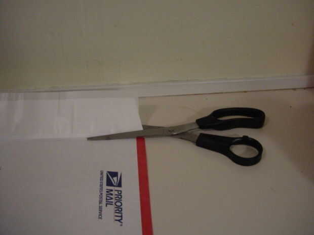 Se trata del corte sólo vamos a hacer para este proyecto! Usando un par de tijeras o cuchillo x-acto, cortar esa cinta adhesiva en su doblez. No tire este! Vamos a utilizar esto un poco más adelante.