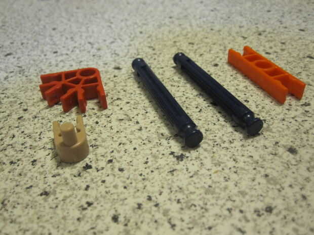 Para este paso pones en los sintonizadores y también le mostraré cómo he hecho mía. Las piezas de k'nex (ver imagen) y pegamento gorila les bond y ponerlos a través de los orificios del sintonizador.