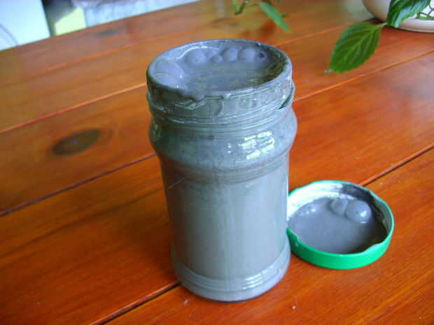 Después de 4 días fui a ver lo que había sucedido a la pintura, y encontré que el cemento había colocado en la parte inferior del envase. Tuve que luchar duro para volver a lograr una consistencia suave a efectos de aplicar la segunda capa de pintura. Hubo entonces una espuma densa y homogénea, que sin embargo no me impidió usar la pintura.