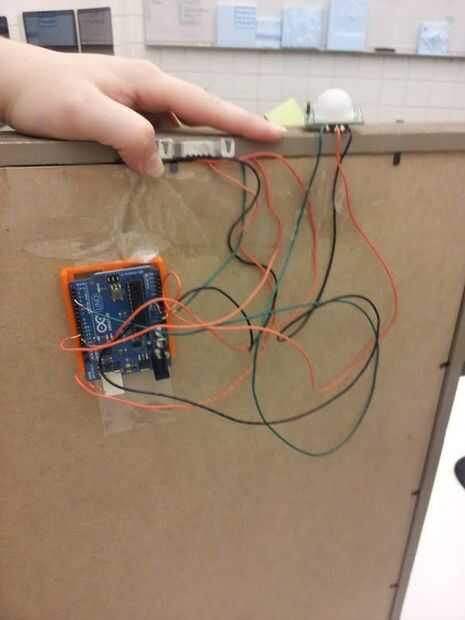 Una vez todo soldado y decorado, es el momento de organizar los cables y luego poner la placa dentro de la carcasa de la caja de la sombra. Cinta (o conectar sin embargo puedes) tu Arduino a la parte trasera simplemente conectarse los cables de plomo, subir un dibujo y vaya! Y ahí lo tienen!