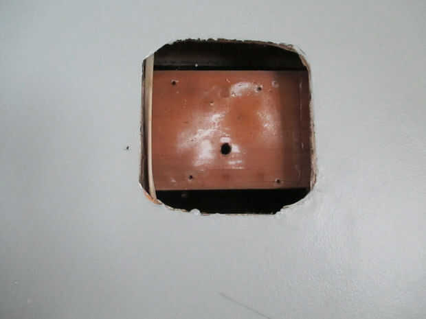 El timbre de la puerta de los años 60 orador aquí. Ahora no es así. El hoyo de su remoción ha sido cubierto por los últimos años por una foto enmarcada de puentes cubiertos. Los puentes cubiertos cubrían el agujero. Pero ya te dije. Ahora no es así. Hay sólo un agujero en la pared.