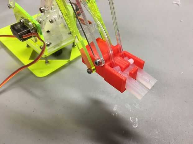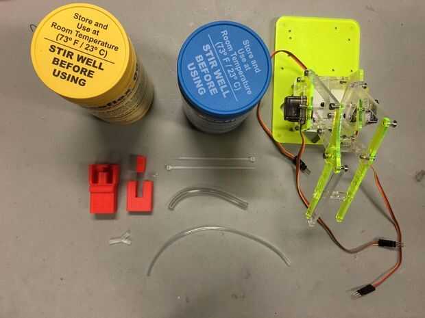Suave robótica es un campo joven de la robótica que hace robots de materiales blandos. Aunque muchos proyectos de robótica suave hacia fuera allí están completamente suaves, suave robótica tendrá su mayor impacto cuando se combinan con robots duros. Para probar esto, tomé un MeArm (http://www.mearm.com/), un DIY, brazo de robot de código abierto y había provisto de una garra robótica suave que se cierra cuando está inflado. Esta guía cubre cómo construir a la pinza y adjuntarlo a la MeArm.