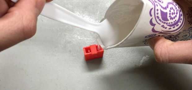 Presione el bloque del molde en la ranura en el molde como se muestra en las fotos. Mezclar una pequeña cantidad de Ecoflex 00-30. Es una mezcla 1:1, así que asegúrese de tener la misma cantidad de ambos líquidos cuando se mezclan. Vierta la mezcla en el molde y déjelo curar durante 4 horas.