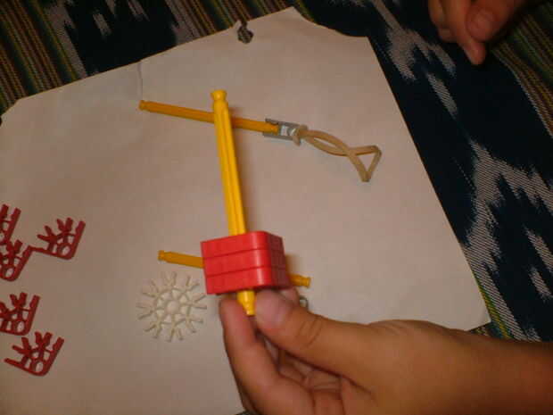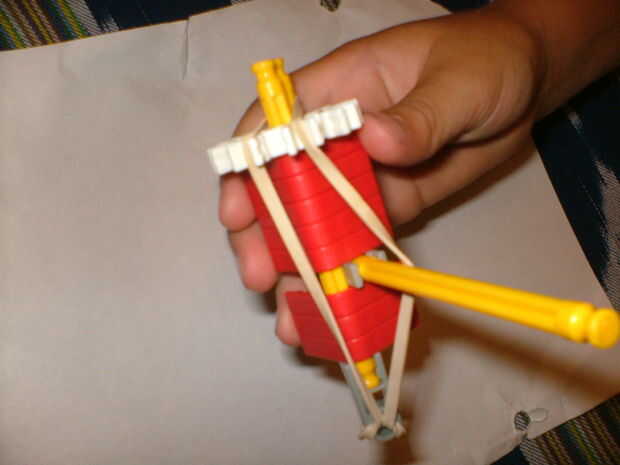 una pistola pequeña de KVG que dispara tubos de pluma y cuenta con gran variedad y exactitud.Paso 1: partes piezas necesarias:2 palos amarillos10 arandelas azuluna banda de caucho2 clips de caras doble naranjaPaso 2: construcción tomar los 2 amarillo