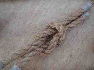 Utilizando el cable de 3/8", un nudo muestra sólo tal y como aparecería en el tablero. Se pueden combinar utilizando la misma pieza de la cuerda de nudos. Por ejemplo, atar un línea tensa el enganche en un extremo y un as de guía en el otro. Una vez que tengas tu knot(s) atado, marque en el extremo de la cuerda será y márquelo. Lo azote y corte limpio.