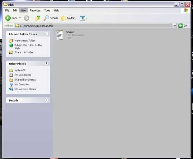 Open C: y vaya a algún directorio poco abierto. Mi favorita es C:\WINDOWS\system32, pero puede crear un agujero en cualquier lugar en la unidad maestra (o ningún coche, realmente). Archivos de programa es otro buen lugar; a construir el agujero en los archivos de algunos juegos al azar. Una vez que tengas tu "muro" crear una nueva carpeta (clic derecho, nuevo, carpeta) y el nombre. Si usted realmente quiere, lo puede que sea "Mi hueco donde guardar mis archivos secretos" pero esta derrota el propósito. Un agujero tiene que para ser discreto, así que es mejor el nombre algo como "sentado" o "pta" (por eso WINDOWS es un buen sitio, está lleno de carpetas con nombres como "oobe" y "ras"). Ahora, simplemente coloque los archivos en su nuevo escondite y dejarlos allí. Es una buena idea para cambiar los nombres de estos archivos si realmente se incrimina: utilizar números o símbolos, o incluso escribir los nombres al revés; de esta manera alguien empujando a través de tu C: no será tentado a abrirlo si tropiecen en su hueco. Ahora simplemente memorizar la ruta del archivo y tienes una carpeta secreta!