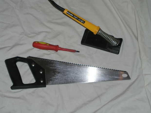 - Sierra de pad / cuchillas Sierra traste con metal y madera. Esto es para cortar el agujero central en el marco superior. Sólo necesita la hoja para cortar si desea cortar la hoja de aluminio a la medida.