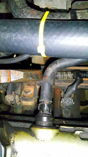 La manguera de aspiración tiene que ser eliminado primero y luego la válvula pcv apalancar con cuidado hacia fuera. La válvula es plástico y puede romper fácilmente si la áspera manejado.