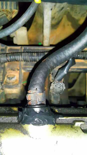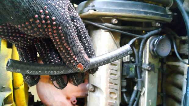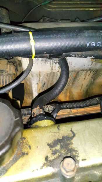 Usando un nuevo pedazo de manguera, hice la conexión de vacío para el aire de admisión múltiple. La válvula pcv que golpeada suavemente hacia el lugar y la manguera estaba conectada a él. Usé pegamento de silicona para asegurar una conexión firme vacío en el asiento de válvula en la cabeza del motor.