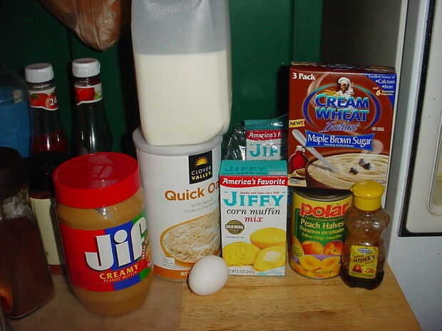 1 lata melocotón en dados, también se puede utilizar machacada piña, fresas o cualquier fruta o su elección, incluso he usado mermelada de fresa