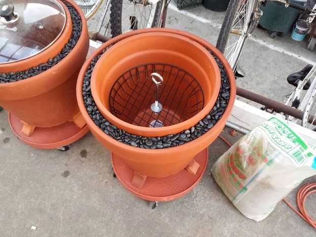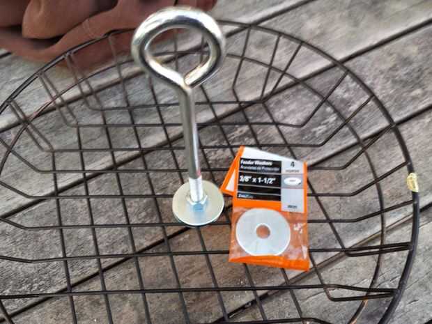Conseguir su perno de ojal y un par de tuercas y arandelas y perno en la cesta de sandwich como cerca de la mitad como puedas. La cesta debe pellizca firmemente entre dos arandelas. Esta cesta interior le da una plataforma adicional para poner cosas y es una de las características que lo hace esta olla zeer práctico comparado con algunos de lo otros "primer mundo" ferretería zeer potes usted pudo haber visto.