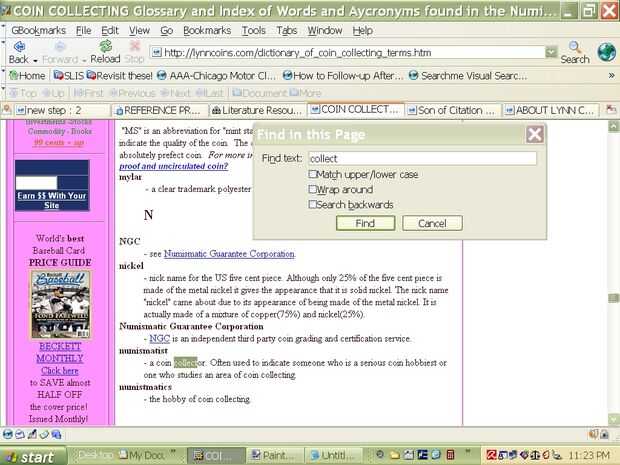 -la afición de coleccionar monedas.