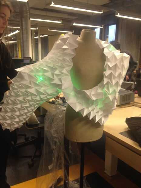 El código nos ha permitido crear un fluido desbordamiento de colores. Es una combinación de un código estándar de Neopixel y un código que traduce los valores del sensor Flex para colores RGB.