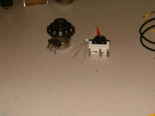 macetas surtidas (potenciómetros) (alrededor de 3.000 ohmios a 10.000 ohms) y conmutadores (mira que cool).