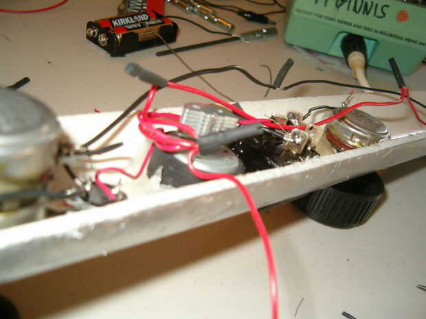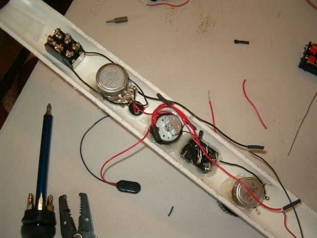 aquí es donde tus conocimientos de electrónica in dig planificar tu circuito. ¿recuerda poca cosa WAAAYYY en el buen viejo paso 1? bien ahora es el momento para usarlo. soldadura básicamente su positivo a cualquier un LED en serie con el interruptor y bote hacia el lado positivo de la batería y el funcionamiento el negativo cable recto de nuevo hacia el lado negativo de la batería. do básicamente algunos con sus otros componentes (más o menos un interruptor de pote o tilt) con los motores de polaridad (positiva o negativa) no importa. Aísle todos sin protección (sin aislamiento) soldar los puntos con el tubo del encogimiento (sin contar terminales).