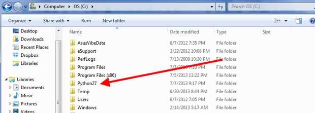 - ¡ Hurra! Python debería aparecer ahora en su nueva carpeta C:\Python27 !