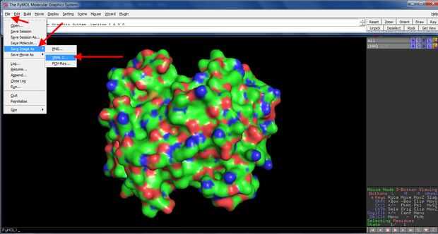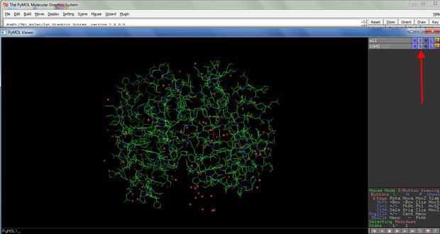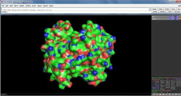 , cortesía de la Wiki de PyMOL)(Diversión Nota: Si revisas pantalla > Stereo y cambiar pantalla > Stereo > modo estéreo puede habilitar el derecho de visualización en la pantalla del ordenador utilizando Visión perezoso o rojo azul Anaglifo visión 3D!)