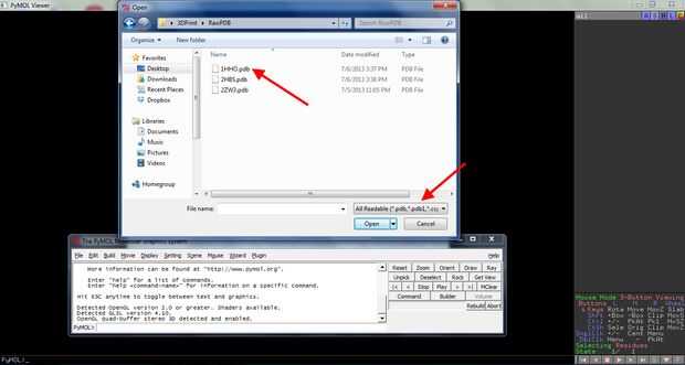 - Ir a archivo > abrir en la barra de menús. Asegúrese de que tener PyMOL buscando todas las extensiones. Abra el archivo de la molécula que ha descargado previamente.