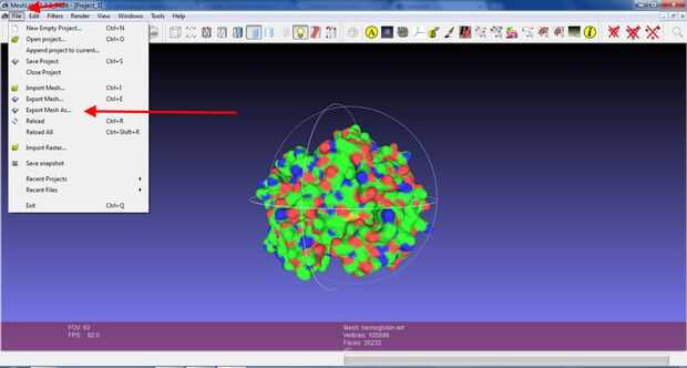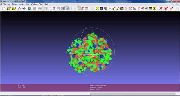 - Aquí te equivocas al deseo de su corazón con funciones de Meshlab. Haga clic y arrastre para girar y colocar su proteína.
