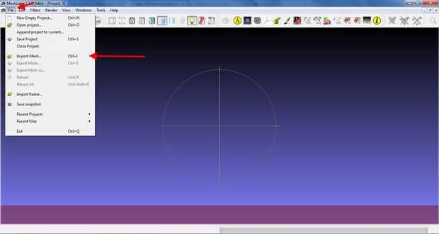 - Una vez tengas MeshLab arriba y funcionando, ve a archivo > Importar malla e importar el archivo .wrl.