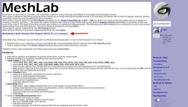 - Sigue el link en sitio web principal de MeshLab y descargar cualquier tipo de archivo es apropiado para su sistema operativo. Usted querrá el .exe si estás en una máquina Windows.