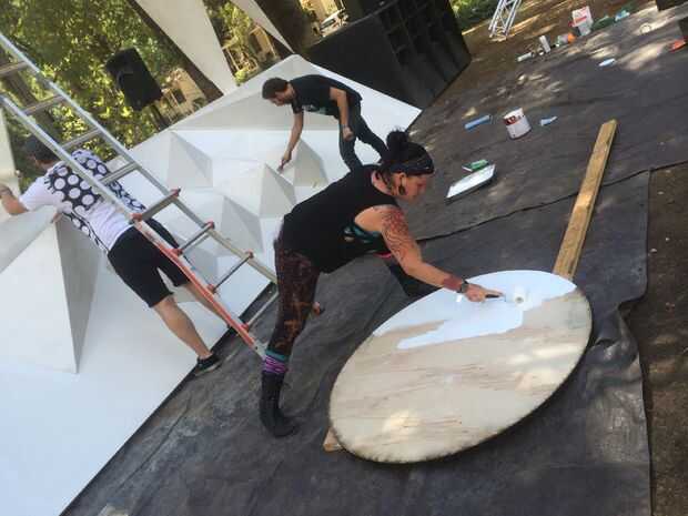 Paso 3: Conseguir a alguien con pintura blanca que está trabajando en otra pantalla de proyección para pintar el círculo para usted.