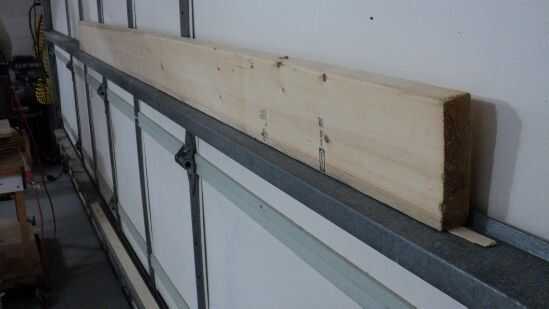 Con los resultados, establecer la tarea de hacer rectificaciones a un lado de algunas nominal 2 X 6 x 8 stock de pies (38.1 X 140 mm X 2.44 m). En la imagen ha acuñado este extremo de un tablero coronado a justo para colocar una regla temporal:
