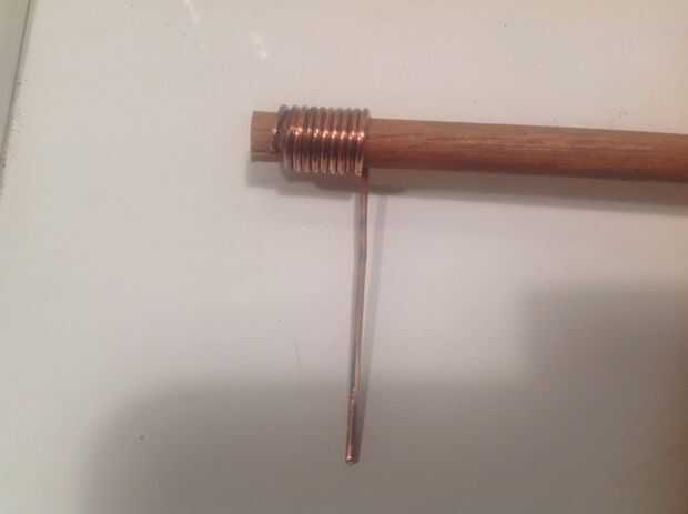 Una vez que el alambre en el agujero, comenzar a enrollarla. Asegúrese que sus bobinas son casi perpendiculares a la sección de la espiga y que sean agradable y apretado. Puedes ver qué hacer de las fotos de arriba.