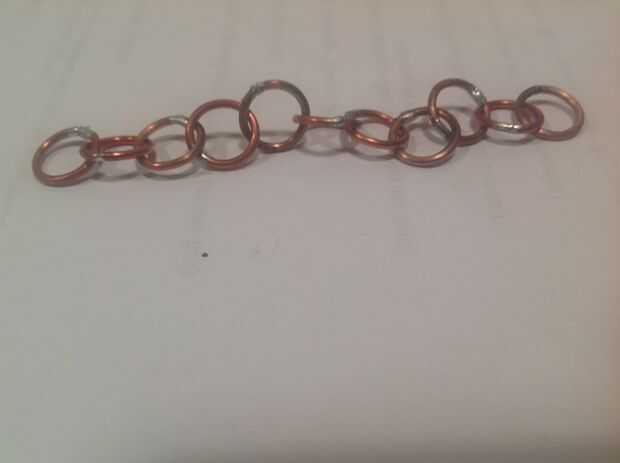 Como dije en el paso 3, de la soldadura de la mitad de la llave de paso de enlaces. Es mejor usar la soldadura sin plomo, como esta pulsera se estar tocando constantemente la piel. Si lo tienes, soldadura cobre haría los anillos todo aspecto cobrizo, así sería ideal.