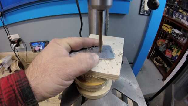 A continuación, perforar algunos grandes bastante para combinación de tuerca y el tornillo lo que va a utilizar. Asegúrese de no hacer los agujeros demasiado apretado. Por darte una pequeña sala de meneo, serás mucho más feliz más adelante.
