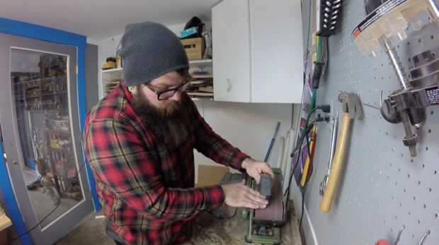 Una vez que exitosamente han evitado al hombre pequeño espacio, terminar el trabajo del metal lijando los bordes afilados. Mina de arena con la lijadora de banda cargada con papel de grano 80, y terminar con unos 120 y 220.