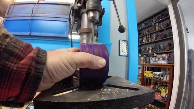 Por último, encontrar la mejor colocación de los agujeros de perno en la base de madera. Encontré el centro de la lámpara con la tapa puesta. Taladre los orificios del mismo tamaño que se encuentran en el soporte del metal. Agregue las tuercas y pernos. Ahora usted está cocinando con grasa!