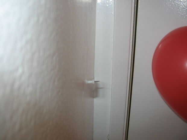 Esto sólo funcionará si hay un trabajo si la puerta abre paralelo a una pared. Para hacer exactamente lo mismo mi padre hizo, tomar el globo, inflar, la última vez que revisé no pop globos planos. Luego tape el balón en el interior de la puerta. Prueba con cinta adhesiva a una a dos pulgadas de bisagras de la puerta. Abra completamente la puerta y marque que el balón toque la pared. Ahora, la cinta la tachuela en la pared. Ahora cierre la puerta completamente cerrada. Cuando se abre la puerta el balón debe empujar contra la tachuela y el pop fuertemente. Teóricamente, esta técnica puede utilizarse en casi cualquier puerta.