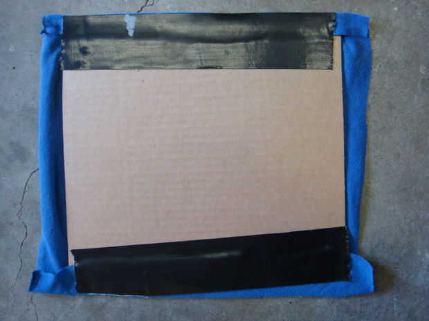1. la cinta a un lado de la tela en la parte posterior de la cartulina.