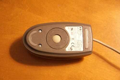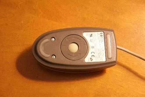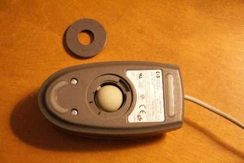 Quitar la bola del rodillo de la parte inferior del ratón girando la retención del anillo hacia la derecha (fotos #1 y #2) hasta que se suelta (Foto #3) y la bola cae hacia fuera (foto #4). A continuación, pulse el lado de ratón contra la mesa para relajar todas las partes del interior (Foto #5).