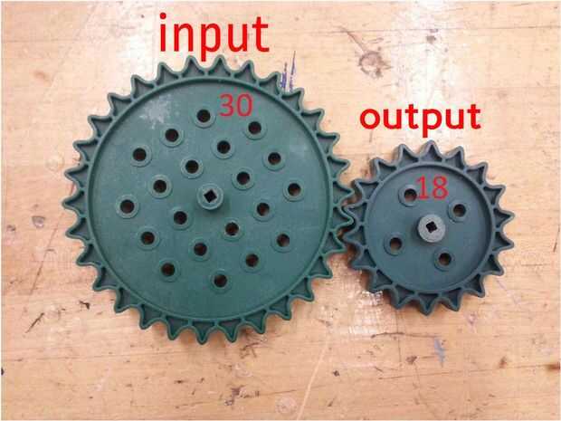 Este número significa que el engranaje de entrada gire veces.6 para que el engranaje de salida gire una vez. Este montaje se le proporcionará velocidad, pero sabe que si sube la velocidad, esfuerzo de torsión desciende, lo que significa que el engranaje de entrada en este caso será más difícil de girar.