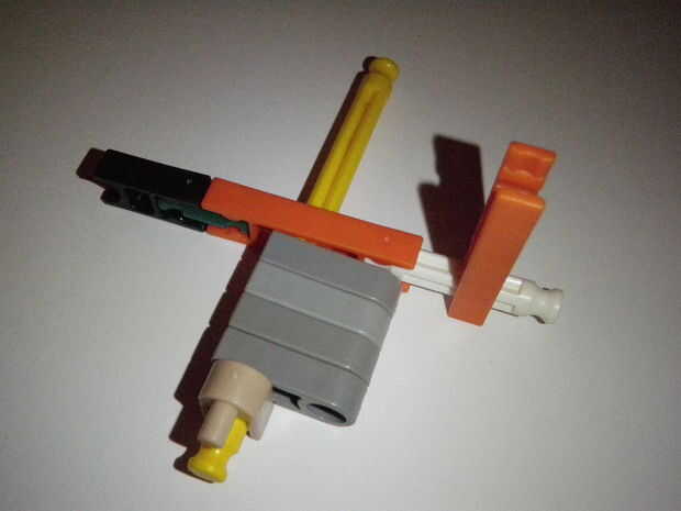 esto es para cualquier estudiante que es irresponsables y olvida su escuela provee (como yo).  Seguir el video...P.S. La pieza naranja está conectada sólo a una de las barras grises.