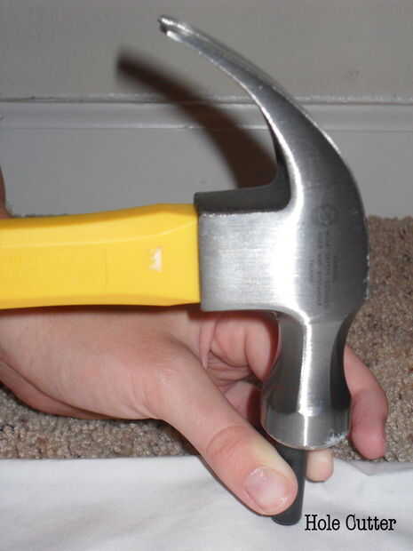 Coloque el soporte de madera por debajo de la hoja donde desea hacer el agujero. A continuación, coloque el corte sobre el área marcado y golpear con el martillo.