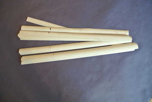 Desmontar una persiana de plástico vieja. Cortado a la medida aproximada. Estas reglas será de 18 pulgadas de largo, así que corte la persiana de 50 pulgadas de largo por la mitad. Cada regla de 18 pulgadas a utilizar dos secciones de 20 pulgadas. Limpie cualquier suciedad.