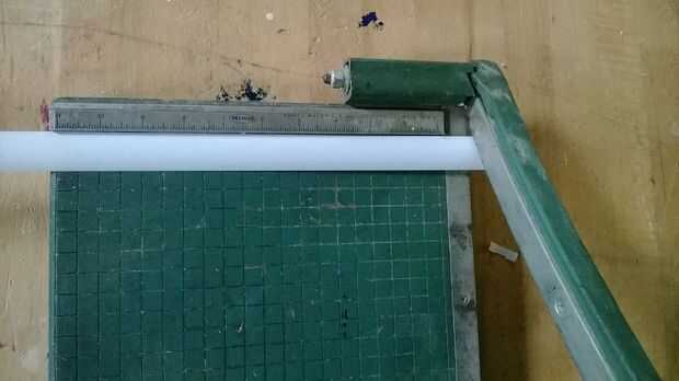 Preparar dos secciones de 8 pulgadas de largo. Estas se utilizarán para trazar las líneas de la regla de pulgadas en su regla y de la diapositiva en sí mismo. Usted puede cortar los ciegos con tijeras pero es difícil conseguir un corte debido a la curva en el ciego. Utilicé un cortador de papel y aún tardó un par de intentos. Parecen obtener los mejores resultados cuando apreto la persiana abajo de plano. La rectitud de este corte afectará la apariencia de las líneas de su regla.