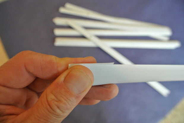 Esta ciego será la parte principal de su regla. Hacer un pliegue cuadrado aproximadamente 2 pulgadas en de lo que será el extremo cero de la regla. Corte la parte doblada del doblez para que tenga una forma agradable.