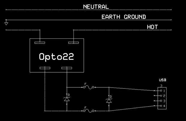 El relé que elegí fue un Z240D10 de OPTO22. Tiene un máximo de corriente de 10 amperios a 120 VCA. Esto debería ser más entonces lo suficiente para mi escritorio. El control de entrada se acepta de 3-32 VDC. Así que los 5 voltios desde el conector USB es más entonces suficiente. También fue elegido por su bajo costo. Si necesita más capacidad puede pedir un SSR más grande.