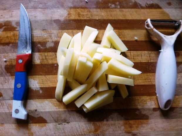 • Corte la papa pedazos largos según lo utilizado en las patatas fritas